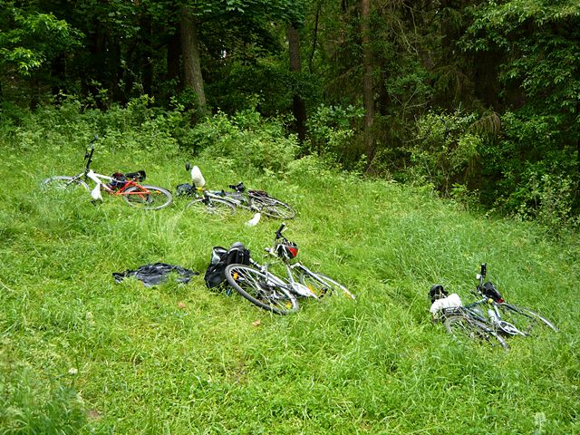 Rowery odpoczywają nad jeziorem