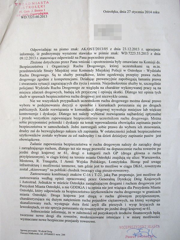 Pismo ws. ddr na ul. I AWP